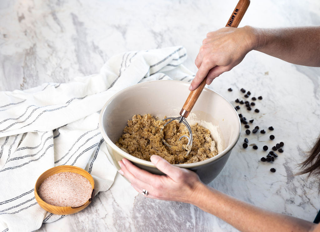 The large mixing head of our dough hook makes mixing ingredients a breeze. Not just for bread, we use our dough hook for just about anything you mix in a bowl (cookies, cake and pancake batter, etc.). A great tool to prevent over mixing those delicate doughs.